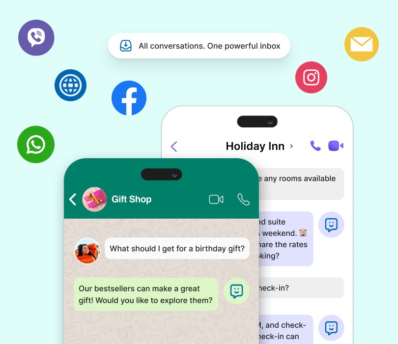Engage instantly across Web, Instagram, Facebook, WhatsApp, Viber, and Email — no matter where your customers reach out.