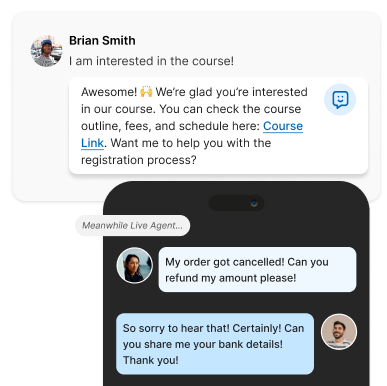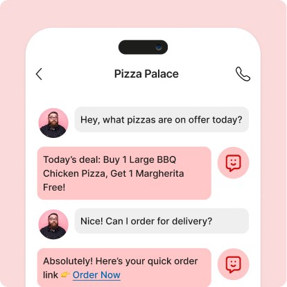Answer inquiries instantly on the world’s most widely used messaging platform. From order updates to customer support, your AI bot keeps chats flowing smoothly.