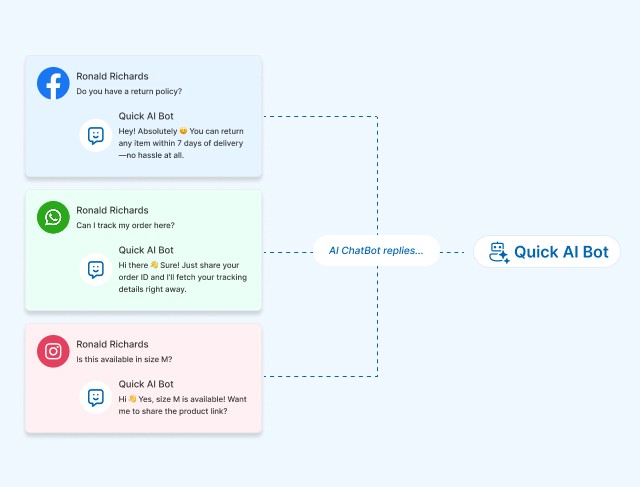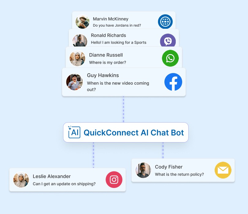 QuickConnect AI Chatbot works smoothly across Web, Instagram, Facebook, WhatsApp, Viber, and Email. It ensures your business is accessible to customers wherever they prefer to communicate.