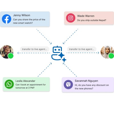 Engage instantly across Web, Instagram, Facebook, WhatsApp, Viber, and Email—no matter where the conversation starts.