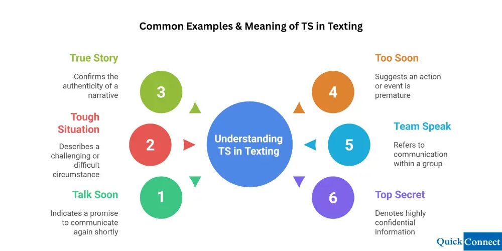 TS is a texting abbreviation that can mean “Talk Soon,” “Tough Situation,” or “True Story,” depending on the content and context of the conversation.