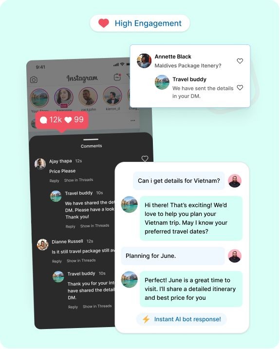 Reply to story comments automatically and start DM conversations instantly—turning story engagement into real interaction.